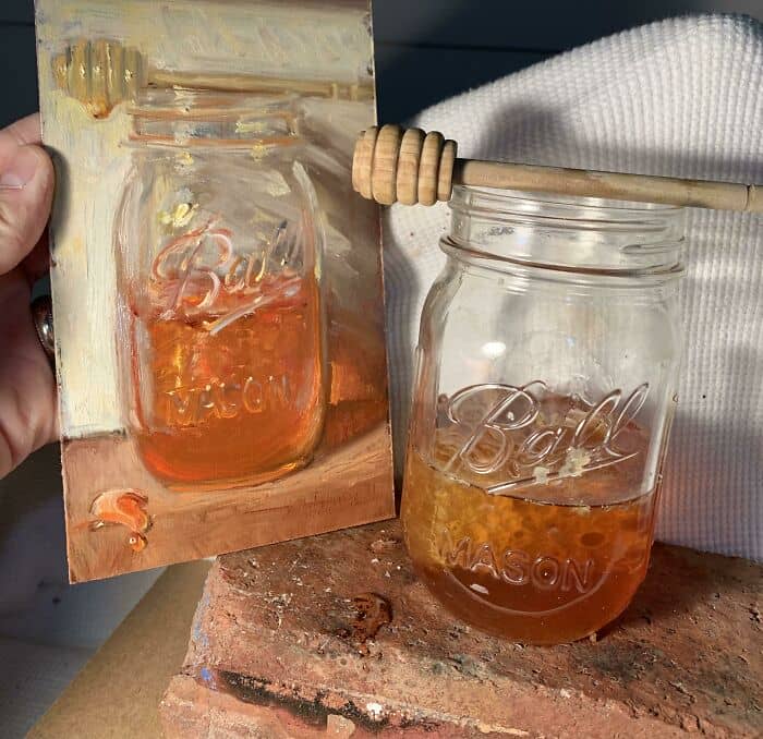 #23 My Oil Painting Of A Jar Of Honey Next To A Jar Of Honey Itself