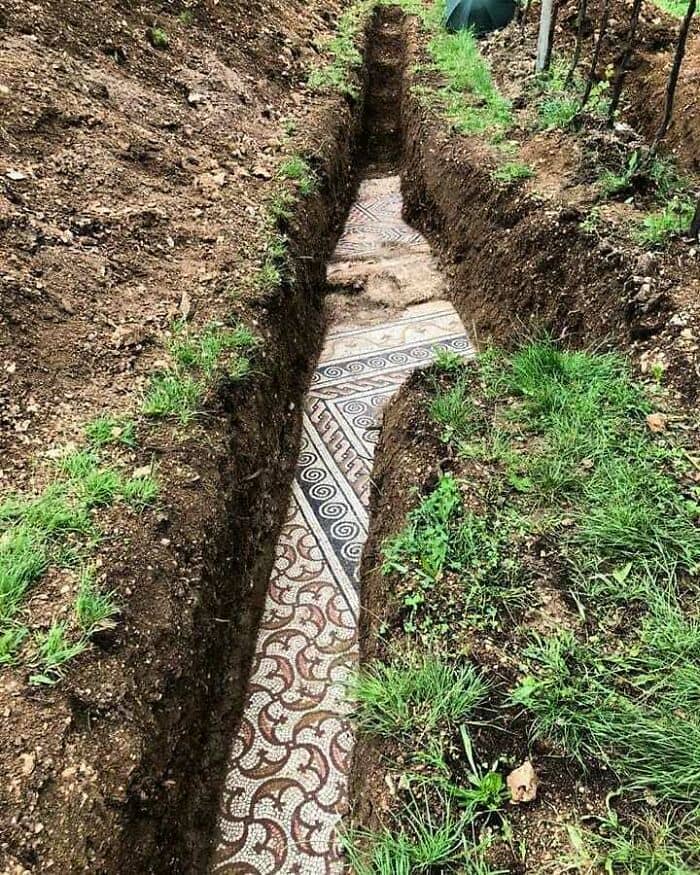 Perfectly preserved Roman mosaic floor discovered under a vineyard, just 12 kilometers outside of Verona, Italy. The multi-colored tiles likely date to the 3rd century A.D. These photos were posted on the town’s Facebook page (Comune di Negrar di Valpolicella) with the following caption (translated from Italian): “After countless decades of failed attempts, part of the floor and foundations of the Roman villa located north of Verona, discovered by scholars a century ago, has finally been brought to light…The superintendent will now liaise with the owners of the area and municipality to identify the most appropriate ways of making this archaeological treasure, which has always been hidden beneath our feet, available and accessible.”