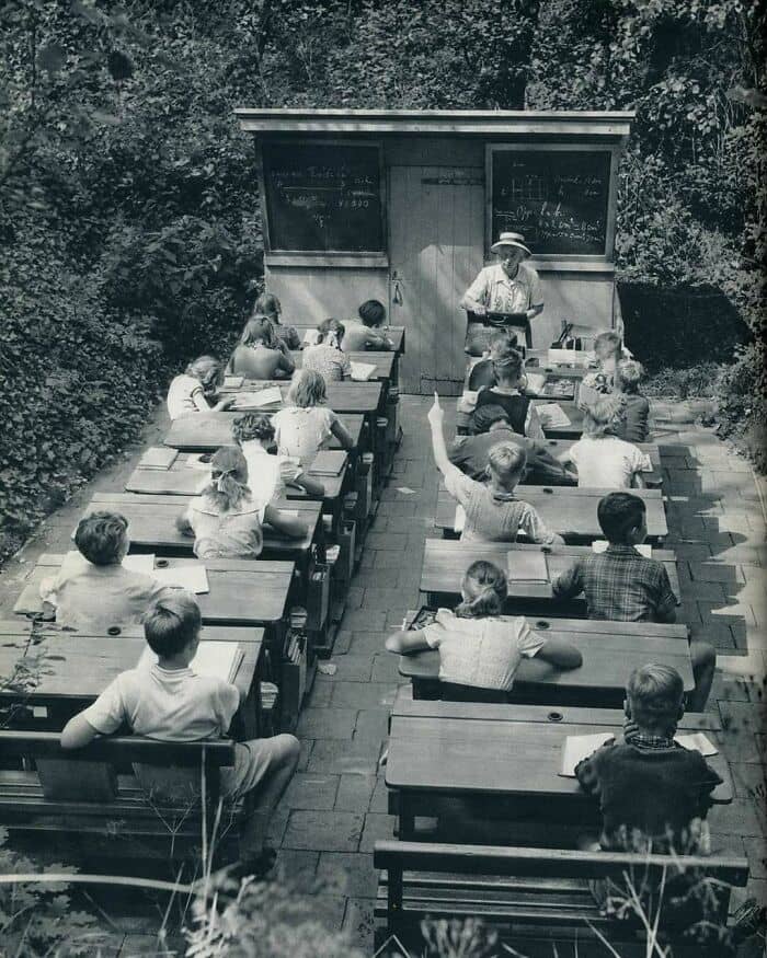 A forgotten age of open air classrooms in the Netherlands, 1957. The open air school movement originated in Europe at the beginning of the 20th century to help sickly children. Classes were taught in the middle of the forest—far away from urban centers—with the belief that good ventilation, clean air and sunlight contributed to the overall physical and mental well-being of the students. The schools were also built with the specific purpose of combatting tuberculosis (TB), an infectious disease which typically attacks the lungs. TB is spread through the air when an infected individual coughs, spits, speaks, or sneezes. TB has existed since ancient times. Scientists have discovered evidence of the disease in the remains of a 17,000-year-old Bison discovered in Wyoming. The remains of prehistoric humans and even Egyptian mummies from 5,000 years ago have displayed evidence of having had TB. In the 1800s, TB was one of leading causes of death in Europe, but by the mid 20th century, mortality rates had dropped considerably thanks to improvements in sanitation and other public health measures. The introduction of the Bacille Calmette-Guérin (BCG) vaccine in 1921 and the development of antibiotics helped curb the mortality rate even further. Today TB is curable and preventable. Despite this, it still killed 1.5 million people in 2018 and is one of the top 10 causes of death according to the World Health Organization (WHO).
