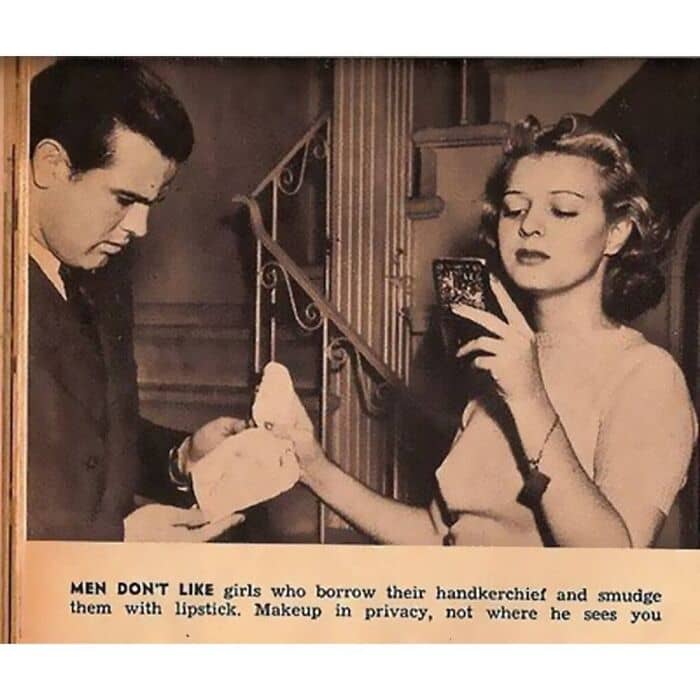 Dating tips for women from Parade Magazine back in 1938. Seeing these ridiculous dating tips, I can’t say I was too surprised considering the time period. I did, however, come across one Interesting article in Time Magazine dating back to March 11, 1957, which was quite eye-opening to say the least. Apparently in the 1950s, the idea of teenagers having stable monogamous relationships (“going steady”) was actually frowned upon by parents and viewed as amoral by the church. In fact, teenagers were encouraged to go out with different people every weekend. Here’s an excerpt from the article: “U.S. mating habits have undergone quite a change in the last generation, and the change is worrying leaders of the Roman Catholic Church. Far from being charged with lack of seriousness and fickle habits, youth is now being reproved for being too serious and not fickle enough. Instead of using their adolescent years to meet as many of the opposite sex as possible, to learn their ways and appraise their worth, teenagers are trending more and more to ‘go steady.’ By definition, boys and girls who go steady dance together exclusively (cutting in is frowned upon), sip their sodas, absorb their double features and spin their platters in each other’s company or not at all. Steady-going girls indicate their unavailability in various ways, ranging from the old-fashioned fraternity pins and class rings to certain arrangements of pigtails or bobby pins. Parents often encourage these relationships as stabilizing or ‘cute.’ But Catholic authorities view them as a danger to morals so serious that last month the principal of St. Anthony’s parochial high school in Bristol, Conn. expelled four students for going steady, and the current issues of two Catholic magazines attack the custom.”
