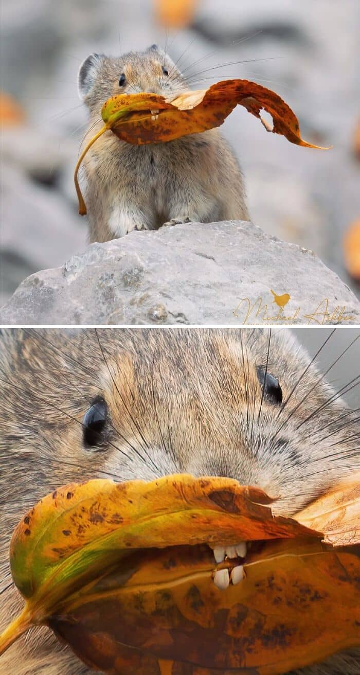 This little mountain pika is deep in its fall grind, dashing around with a mouthful of leaves as it builds up its winter stash. Living high in the alpine zones means no breaks, pikas spend the season collecting grasses and plants, tucking them beneath rocks to create hidden food piles that will keep them going once everything freezes over.