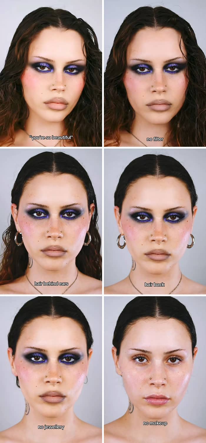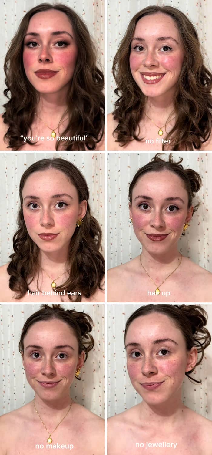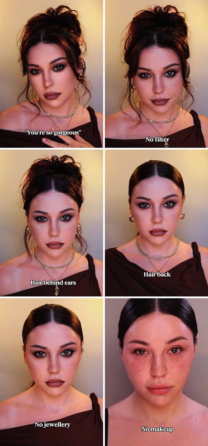We have to remember that our online personas are curated, and the vast majority of people are trying to make themselves appear as beautiful, successful and happy as possible. So to give netizens a reality check, Sarah New started a trend on TikTok where she encouraged women to show their bare faces without any makeup or editing. And, spoiler alert, they look just as stunning without all of the glitz and glam. Enjoy scrolling through these reminders of what real faces look like, and be sure to upvote the images that you’d like to see more of on social media!