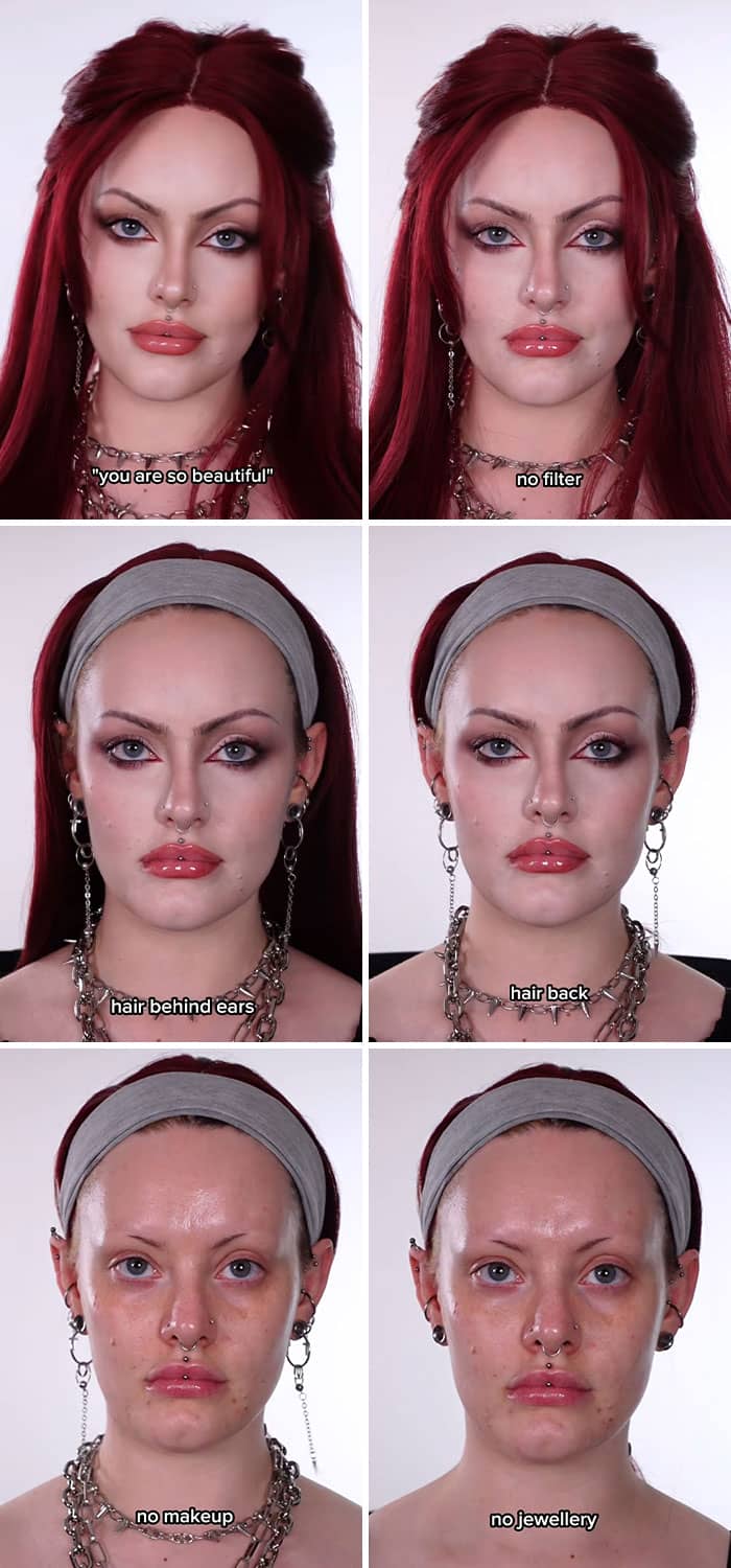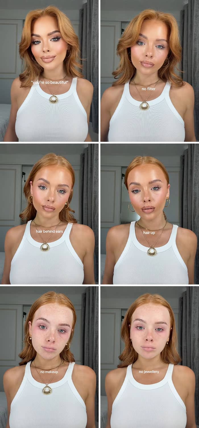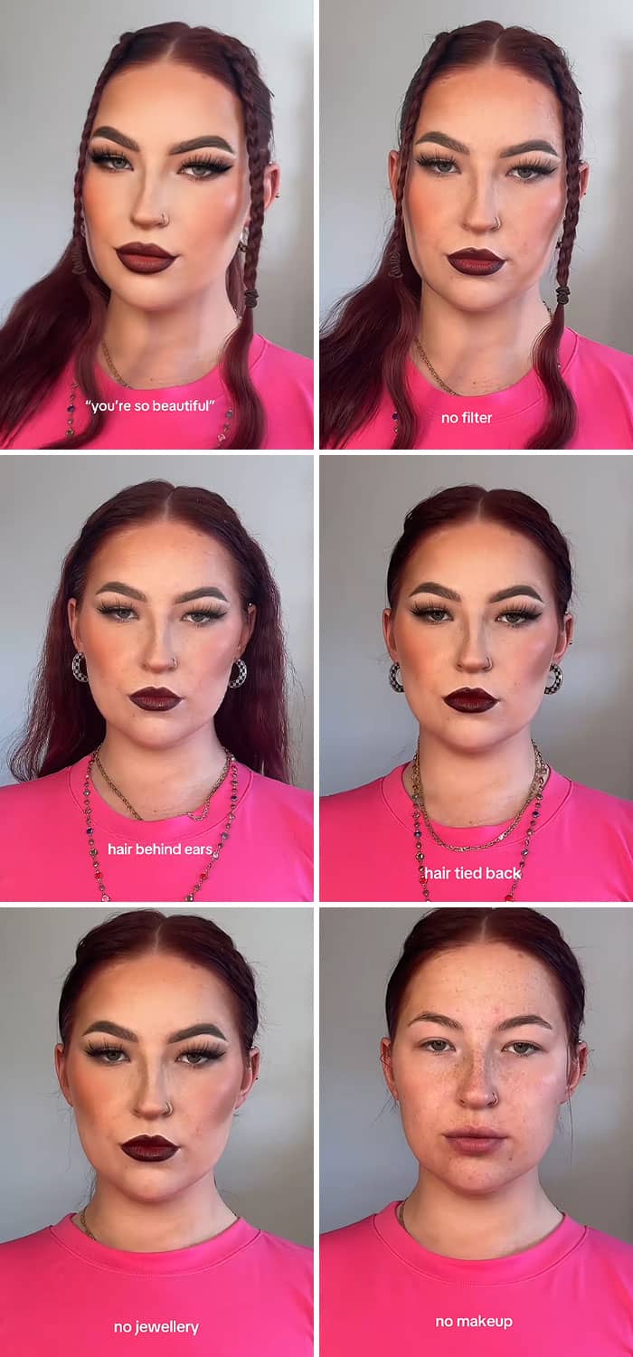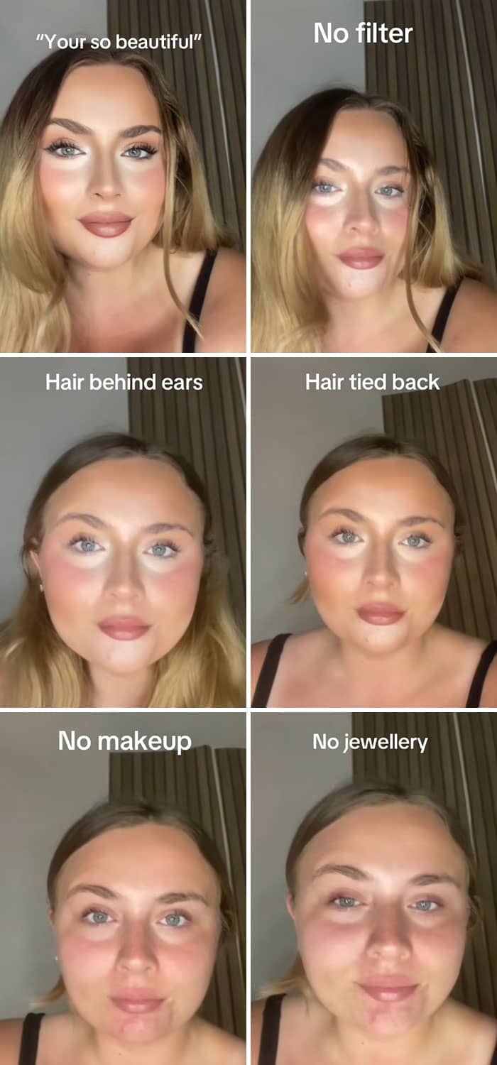 We have to remember that our online personas are curated, and the vast majority of people are trying to make themselves appear as beautiful, successful and happy as possible. So to give netizens a reality check, Sarah New started a trend on TikTok where she encouraged women to show their bare faces without any makeup or editing. And, spoiler alert, they look just as stunning without all of the glitz and glam. Enjoy scrolling through these reminders of what real faces look like, and be sure to upvote the images that you’d like to see more of on social media!
