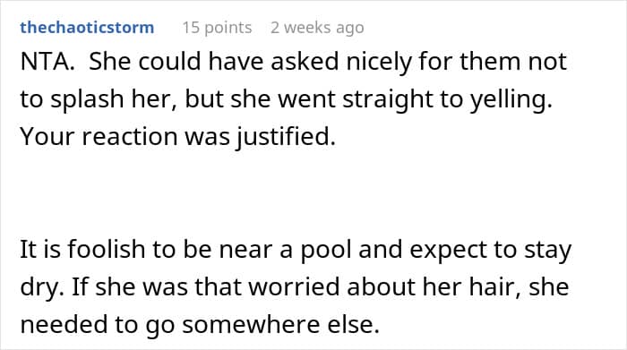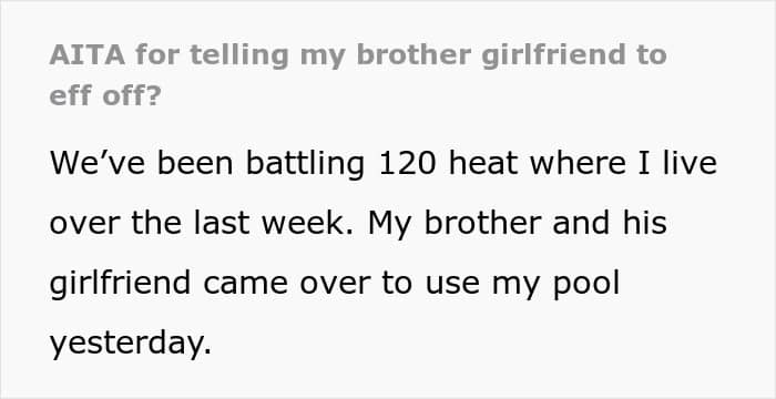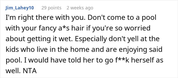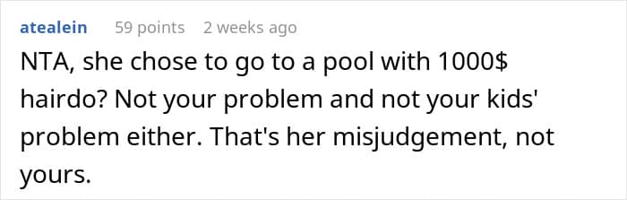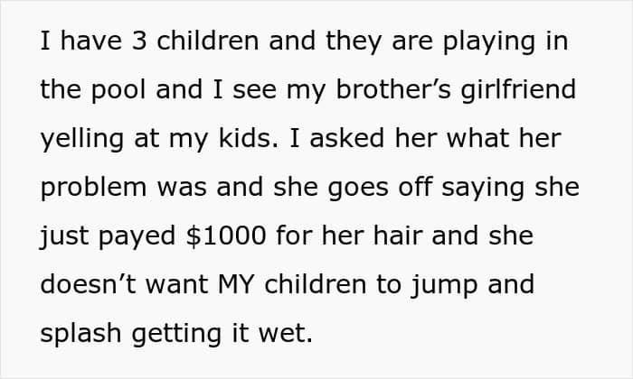 According to one woman, however, children playing in a pool need to be mindful of the fact that she just had her hairdone… Below, you’ll find a story that a frustrated parent shared on the “Am I the [Jerk]?” subreddit detailing why they recently blew up at their brother’s girlfriend.