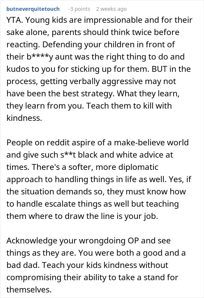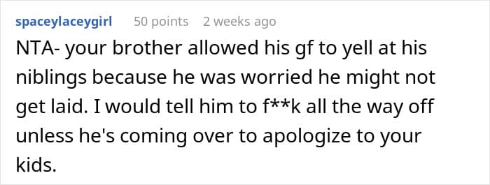 But when their brother’s girlfriend started telling the kids how to behave, the parent decided that she needed to be put in her place