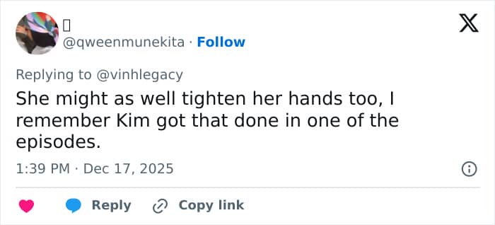 Many users jumped to Kris’ defense, stating, “She looks good and doesn’t owe it to anyone to have a face or hands that look a certain way.”
