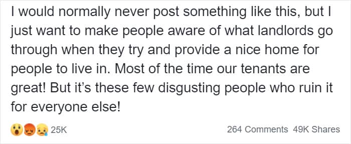 Jerry’s post went viral as some people saw the landlords’ and property managers’ side of things for the very first time. Scroll down and feast your eyes. You’ll cringe. You’ll wonder how these tenants could live like this. You might even gasp. Be sure to let us know if you’ve ever seen people trashing homes like this in the comments below, dear Readers.