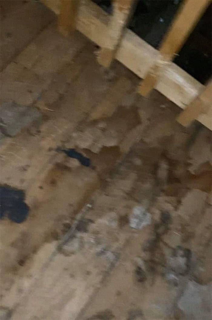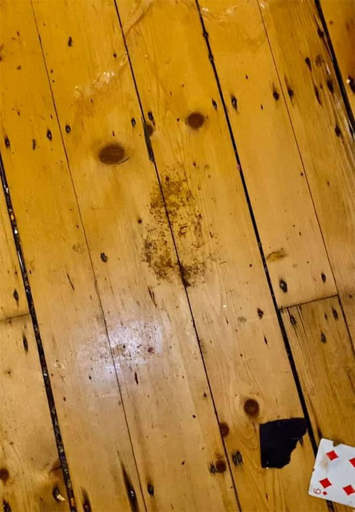 “Ahh yes the room the dog was locked in! The black spots are a mix of diarrhea, and urine!”
