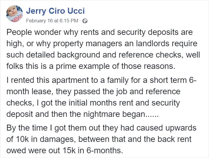 Case in point, Jerry Ciro Ucci uploaded photos as evidence as to why rent and security deposits can sometimes be sky-high. The pics are… shocking, to say the least and perfectly illustrate what absolute pigs some people can be. Scratch that, pigs are cleaner.