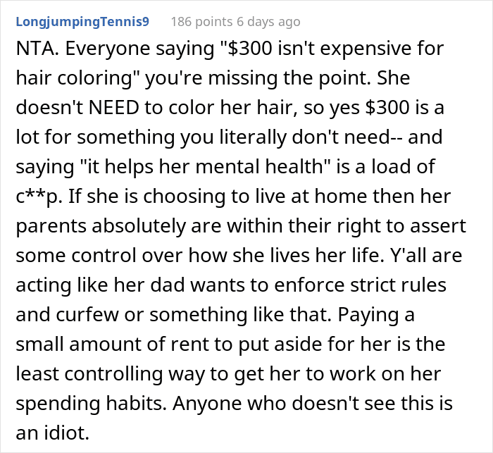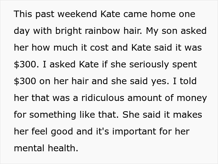 And on one such occasion, the parents found out their 19-year-old had just paid $300 for “bright rainbow hair.” As you can imagine, this didn’t sit well with them.