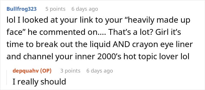 After hearing his rude remarks, the woman decided to annoy him and wear even more makeup every day