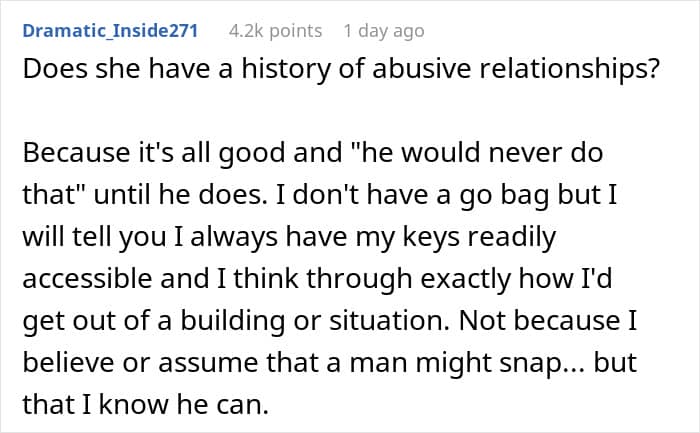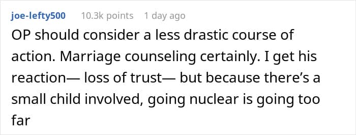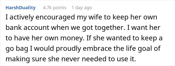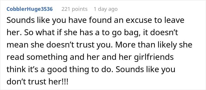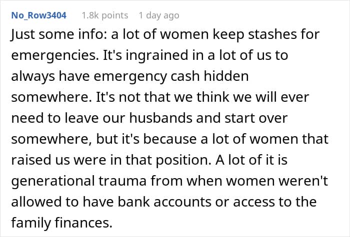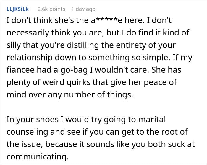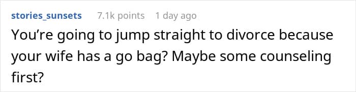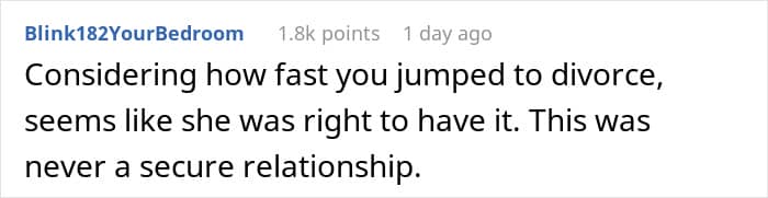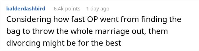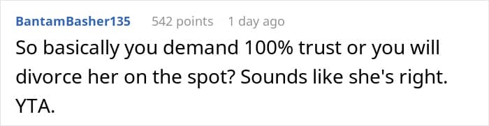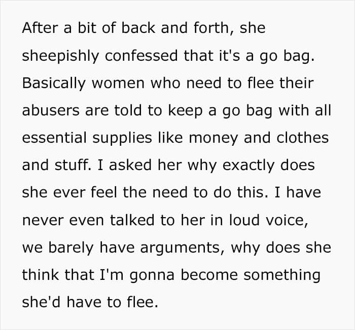 Redditor Sadhusbandry’s wife was one of those people who kept it just in case something happened. But when her husband found it, he became very defensive and accused her of distrusting him. Without any faith left in their relationship, he didn’t see it continuing.