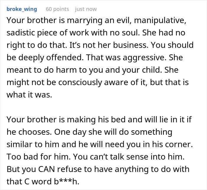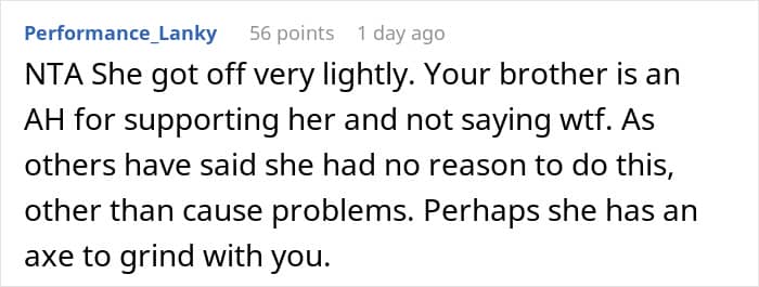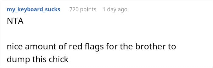 Most commenters didn’t agree with the sister-in-law’s behavior