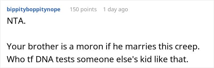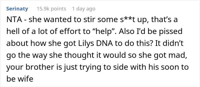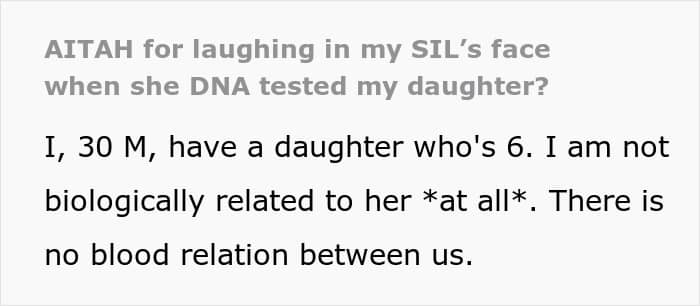 His sister-in-law DNA tested the child without consent, which led to an embarrassing situation