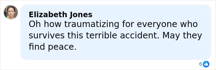 “Oh how traumatizing for everyone who survives this terrible accident. May they find peace,” one user wrote.