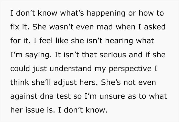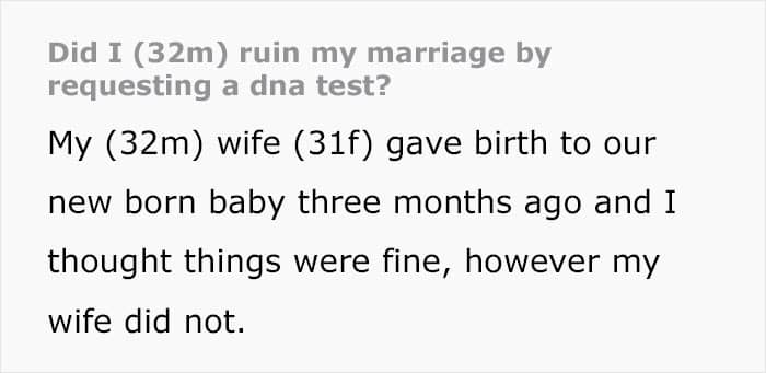 As you probably already understand, this didn’t lead to anything good. One fine day, the guy came to his wife and asked her to do a DNA test for the child. She, frankly speaking, was shocked, but agreed. And only when the test results confirmed his paternity, the dude announced that now he was definitely ready to take part in caring for the baby.