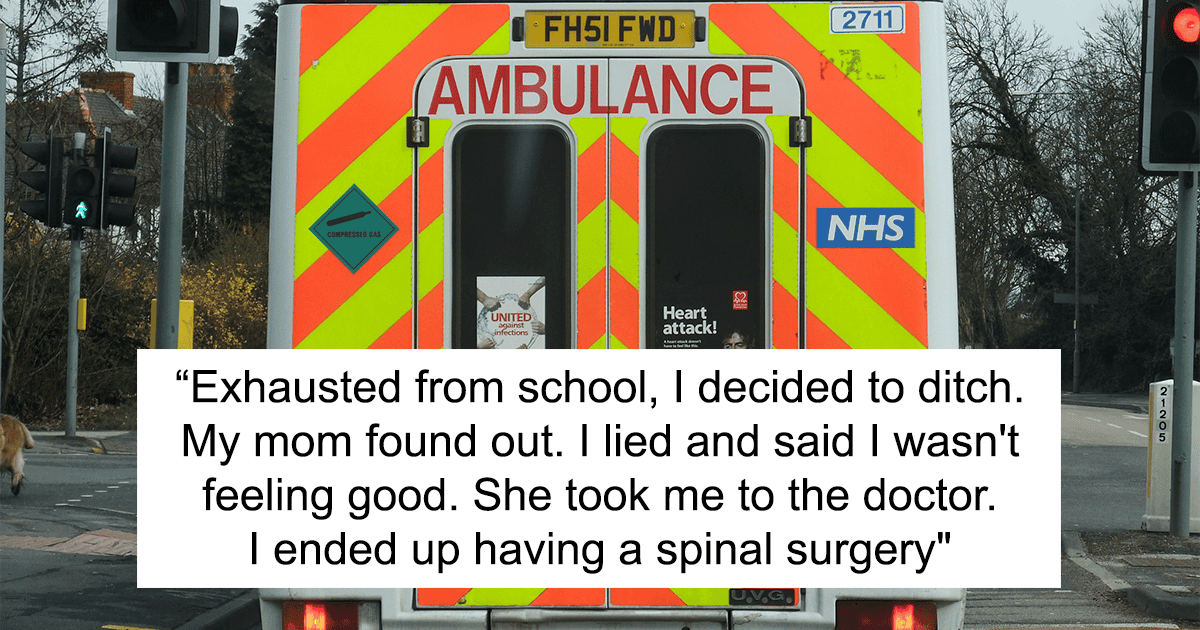 When I was a junior in high school, my mom and I got into a low speed accident with minor damage to both vehicles. Later that month I was so exhausted from school that I decided to ditch. I drove on the backroads for 10 minutes send parked, and then slept.My mom found out and was furious at me. I lied and said that it was because I wasn’t feeling good and I had headaches and some bs like that. She took me to the doctor and they found that my C3 vertebrae was fractured on top of having a tumor growing on it. I ended up having a gnarly 10 hour spinal surgery that honestly completely changed the course of my life.And we only found out about it because I couldn’t think of any other b******t excuse to use