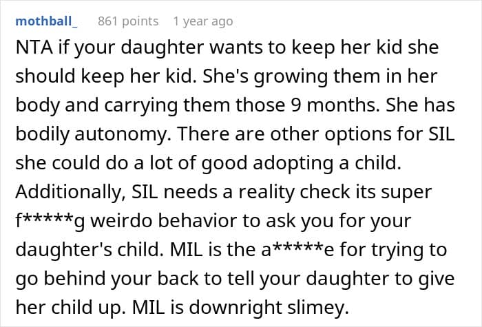 Unfortunately, not all family members were supportive of this teen’s choice to become a mother. Especially the grandmother, who tried shaming and guilt-tripping her granddaughter into giving up the baby to her infertile aunt, for which she got kicked out of the house.