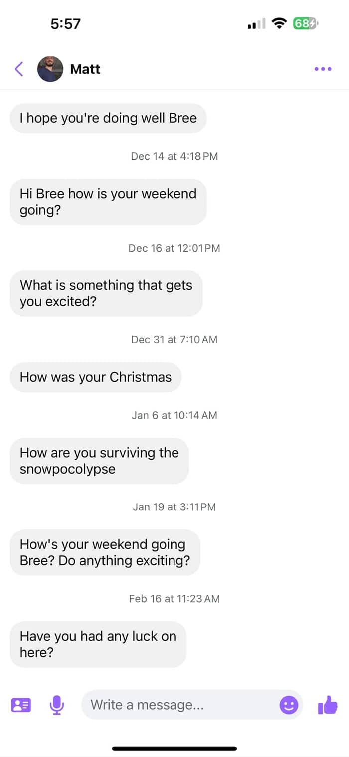 After all, one study found that 65% of Tinder users are already married or in a relationship. So it can be challenging to figure out how to navigate the dating world without wasting time and energy looking in all the wrong places. But apparently, as this list makes very clear, the strategy deployed by some men is just to message women as much as possible and hope for the best.