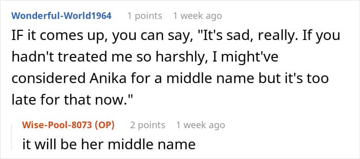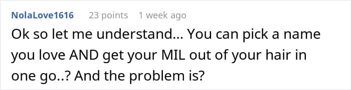 It might seem easy to say no to an overbearing in-law, but as the OP’s story proves, that’s definitely not the case. The poster did exactly what Diane mentioned one should do. She turned her mother-in-law down and decided to go ahead with her own baby name idea. Unfortunately, this led to even more chaos and a big disagreement between the women.