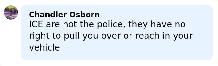 She recalled seeing the agents asking the driver to “get out of here” and then trying to open her door.