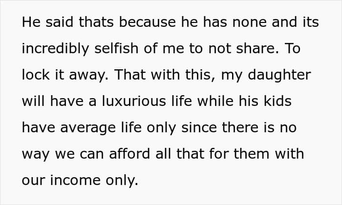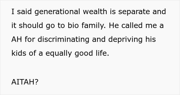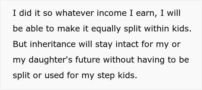 The children may resent their stepparent for inheriting things from their biological parent that they feel entitled to. Angry stepchildren sometimes want to create challenges for the living parent or accuse them of elder financial exploitation. The mother in this particular story foresaw some of the possible issues that could come from her daughter receiving a sizable inheritance, so she decided to nip the problem in the bud.