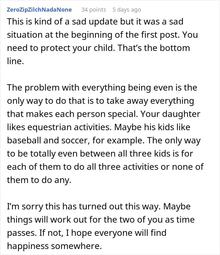 Later, the mother responded to comments and clarified some details about the situation