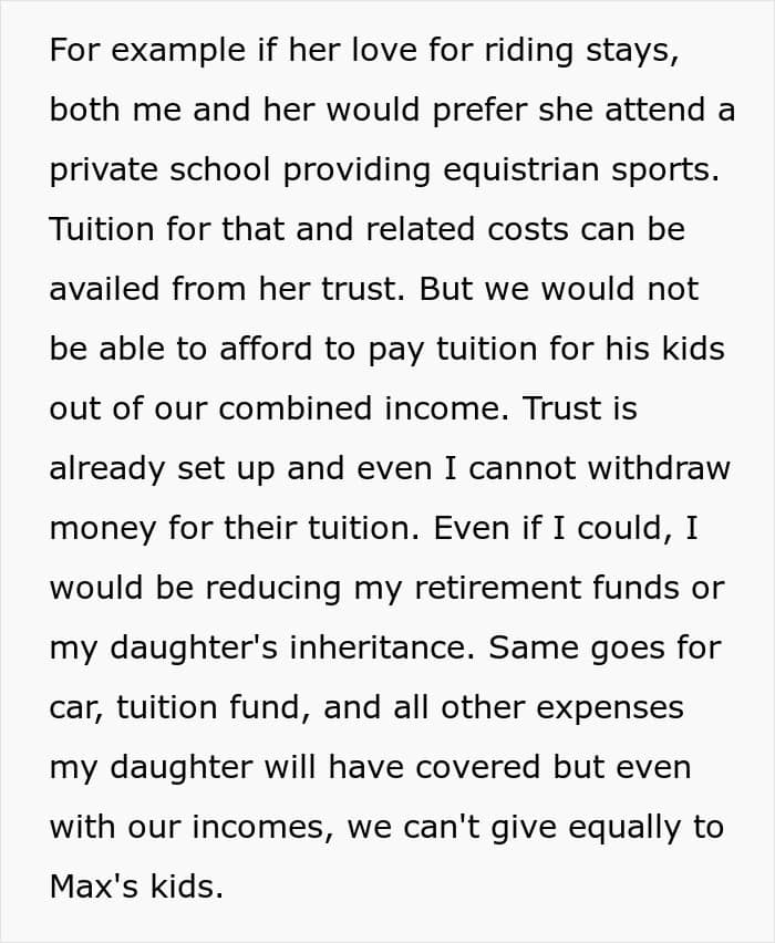 But after getting engaged, her fiancé felt that his children were entitled to some of the funds as well