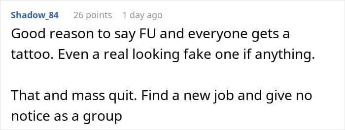This employee became livid after a new “no tattoo” policy was enforced in his workplace, resulting in the loss of an experienced colleague