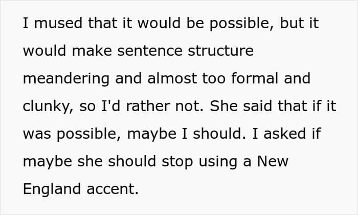 What are your thoughts about the entire situation? What would you do if someone in your office tried to control how you spoke your native language with your family and friends? How would you have handled the bizarre work drama? How do you handle toxic colleagues? Tell us all about it in the comments down below.