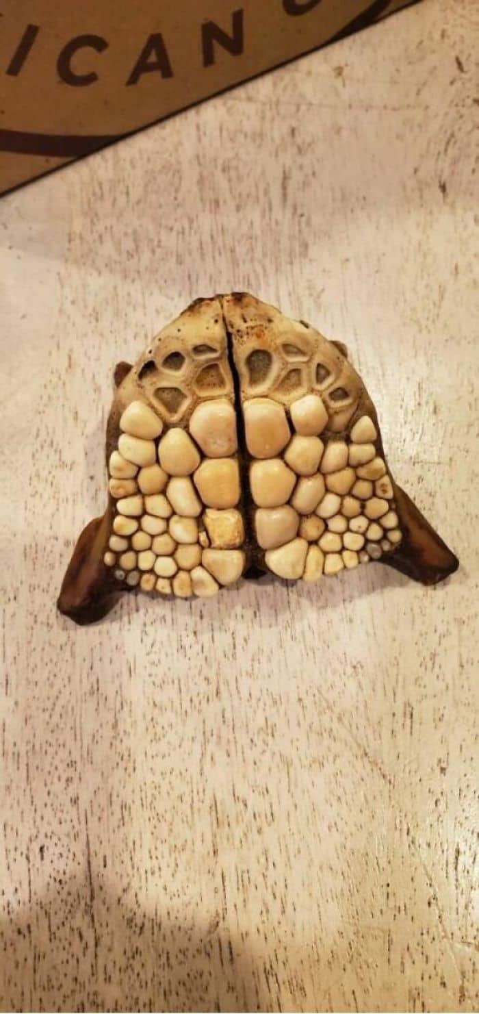 Answer: The Black Drum fish fossils. The Black Drum had a short deep body with a high arched back, but a flattish belly. The jaw teeth were small and pointed, but the throat was armed with large, flat, pavement-like teeth with which the drum crushed shellfish, for food. This characteristic separates it from the weakfish and the king fish.