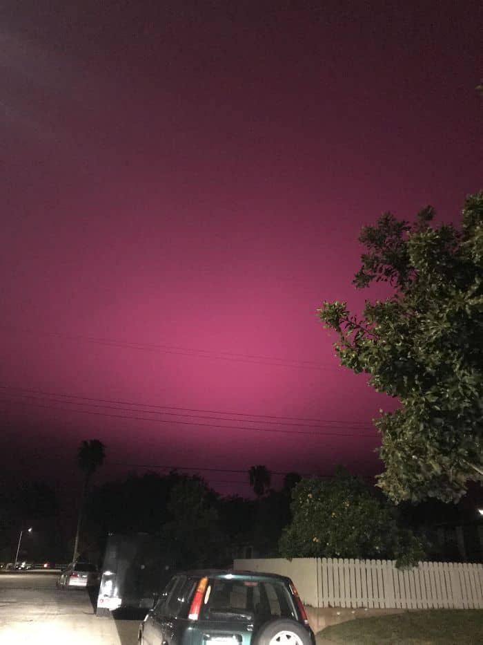 #16 This Purple Sky In Southern California Seen At 1:30am And Lasted For Only About 5 Minutes Before Fading Away. What Is This Thing?