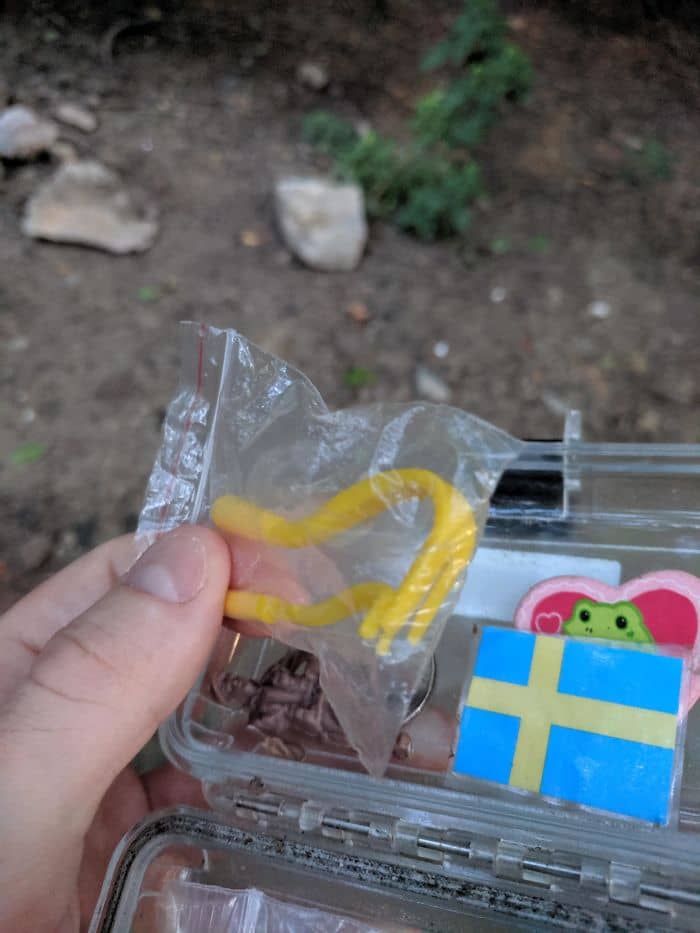 #75 These Two Notched Yellow Hooks Made Of Plastic, Found In A Geocache