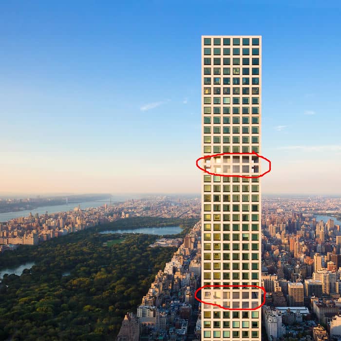 Answer: mechanical voids to get extra height to the building. City zoning regulations have put restrictions on them. Tall buildings would typically need a plant room every 25 storeys or so (of which one may be rooftop). Because of the way planning floorspace typically works though there’s no real limit until now on building more mechanical plant rooms (unlike normal floors) so more space is being put in them than necessary to help with some other issues like here they are a bit open to help reduce wind loading and also just to increase the height of the building because higher units sell for more money.