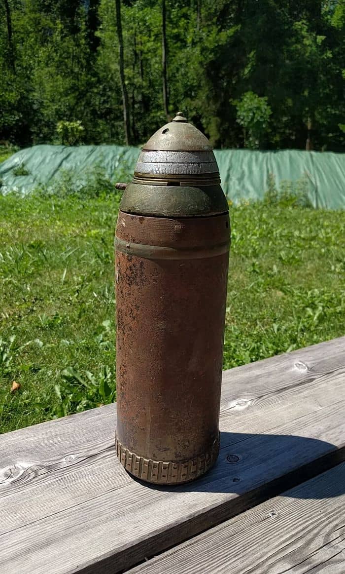 Answer: the fuze from a Swiss “7,5 cm Befestigungs-kanone 1939 L 30” a Swiss fort gun. The fuze itself it’s what’s known as a “Doppelzünder”, or in English, a “combination fuze” or “time and percussion fuze”. The round thing in the middle of the image is the delay setting plug, where you can choose between the percussion and time delay settings, where “VZ” is “Versögerung-Zünder” (Delay fuze) and MZ is “Momentan-Zünder” (Percussion fuze).