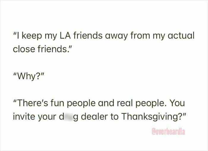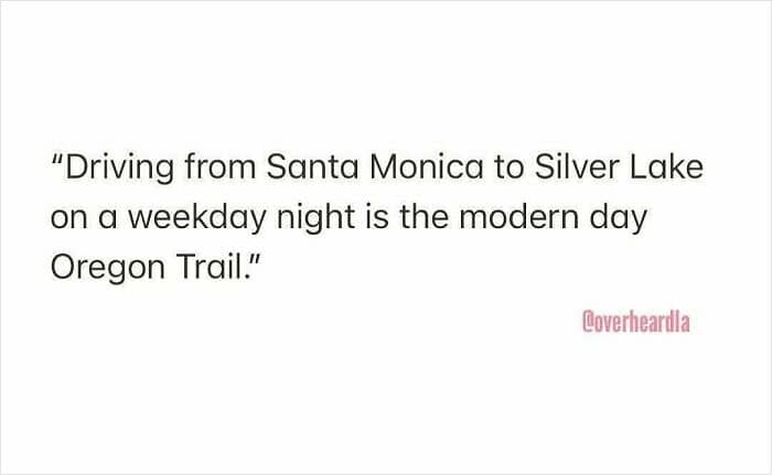 Here are some examples captured by the “Overheard LA” Instagram account. As you read through, you may also get an idea of what gives the city its character.