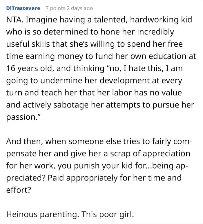RELATED:Family conflict ensued after the relative secretly paid her 16 Y.O. niece $50 for the cake she baked