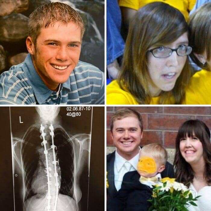 My husband was the prom king and star athlete. I was a super awkward marching band nerd with severe scoliosis and a heart condition.He’s always been sweet, silly, smart and kind.Still can’t believe we’re married.