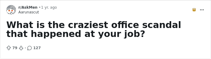 Recently, one netizen asked others to share the juiciest office drama stories from their workplaces. “What is the craziest office scandal that happened at your job?” u/Aarunascut wrote. And people had stories so juicy they could even make Hollywood screenwriters jealous. From illicit office affairs to CEOs embezzling funds and fleeing to Honduras, these employees have seen it all.