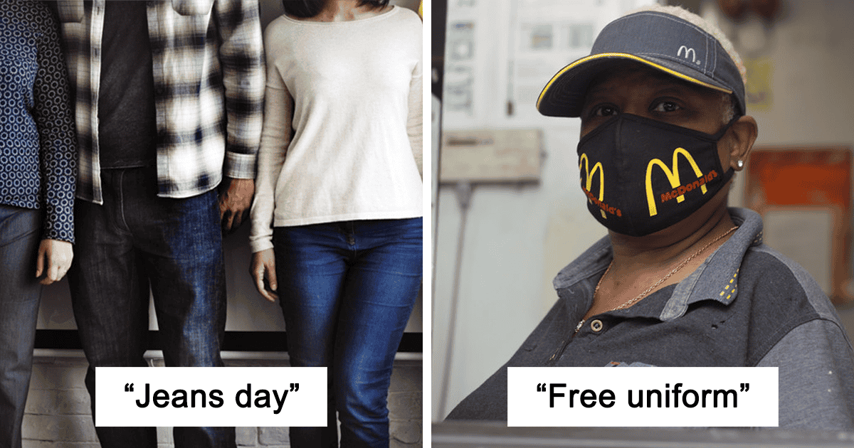 Whether it’s a free uniform, personal protective equipment or lunch, stories that people shared seem to be serving the employer, not the employee. Take a look at some of the best answers we collected from the thread and be sure to share your experience in the comment section below.