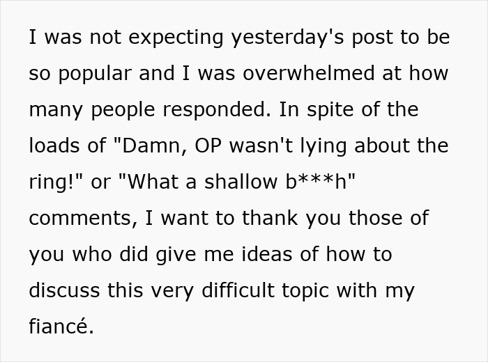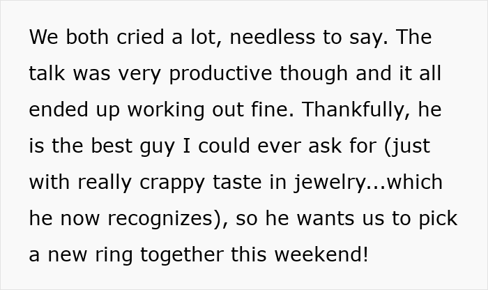 RELATED:A couple was nearly in shambles because of an unattractive engagement ring
