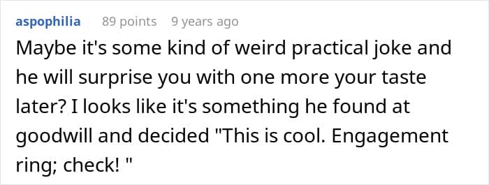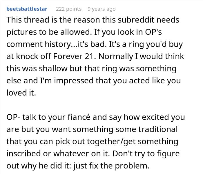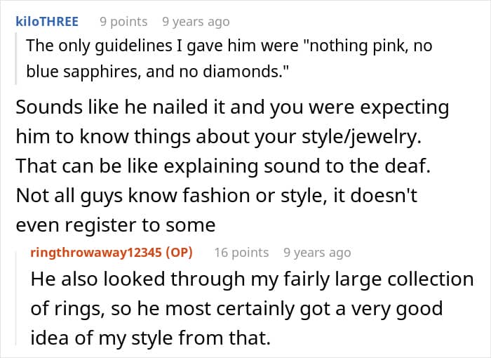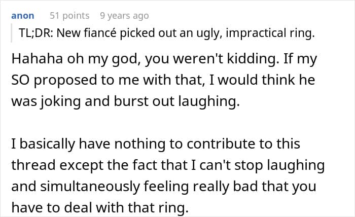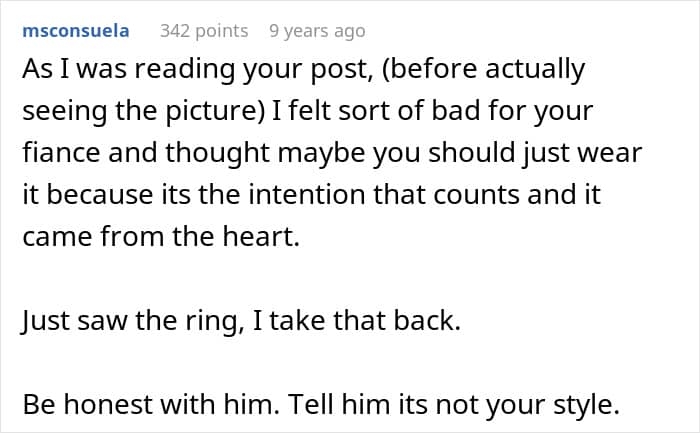 But is it the same case for an unattractive piece of jewelry? A woman encountered this problem when she received what she described as a “horrendous” and “impractical” ring from her fiancé.
