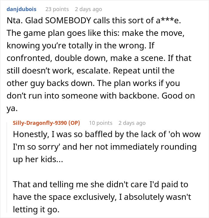 Fortunately, the author firmly stood their ground, even after the woman nearly caused a ruckus amongst children. The situation was handled the way it should have been.