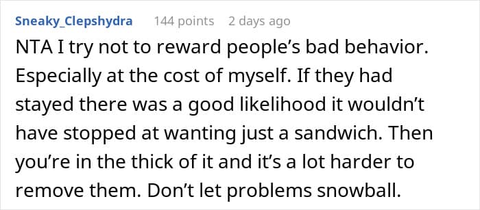 Setting boundaries is necessary when dealing with the entitled behavior exhibited by the woman in the story. However, consistency in how it is imposed is essential.