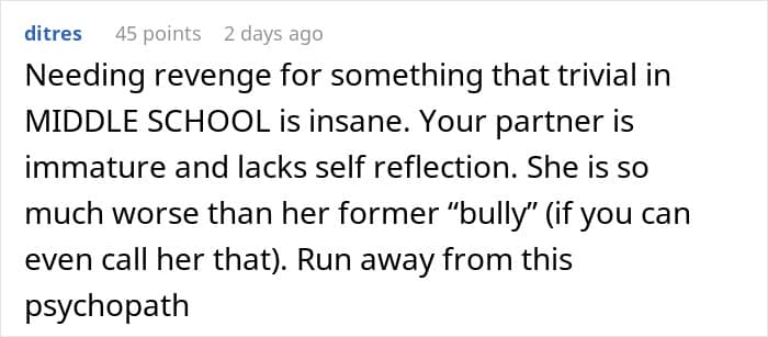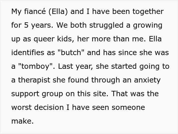 This woman was shocked by how drastically her fiancée’s behavior changed after she started going to therapy. And once she decided to seek revenge on a former bully, the woman began to wonder if their entire relationship was doomed. Below, you’ll find the full story that was shared on Reddit, as well as some of the replies invested readers left.