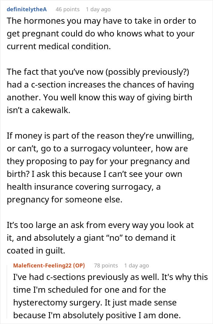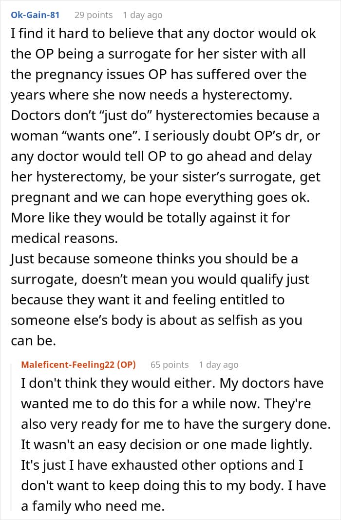 However, not all family members liked the idea. Her sister and brother-in-law, who have been struggling to get pregnant, asked her to become a surrogate instead. In fact, they were so adamant that they began emotionally blackmailing her.
