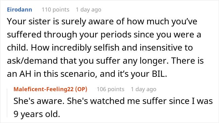 In most cases, the pain begins 24 to 48 hours before your period and subsides within 48 hours of its onset. So, the Redditor’s decision to have a hysterectomy is understandable. Her sister’s insistence for her to become a surrogate, however, is not.