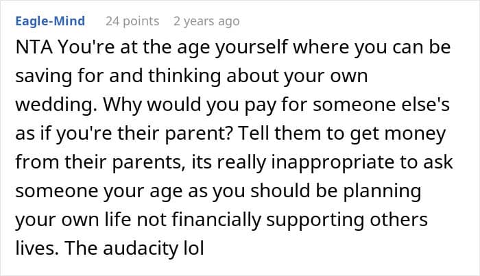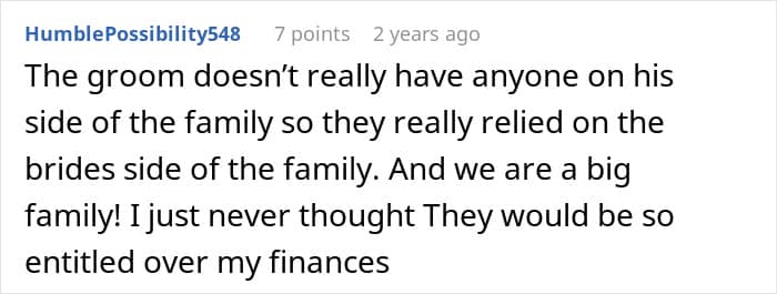 RELATED:Throwing a big wedding can be pricey, and the newlyweds sometimes ask for financial help from family members