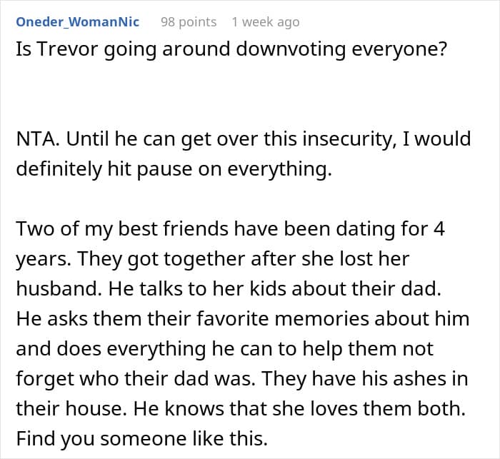 “Jealous of a dead man”: many sympathized with the woman, and felt Trevor was wrong