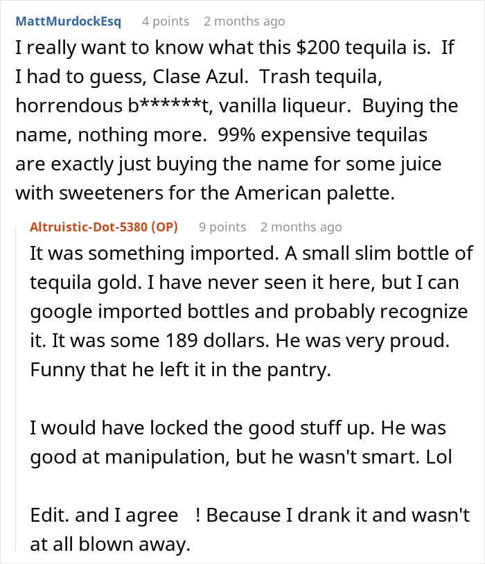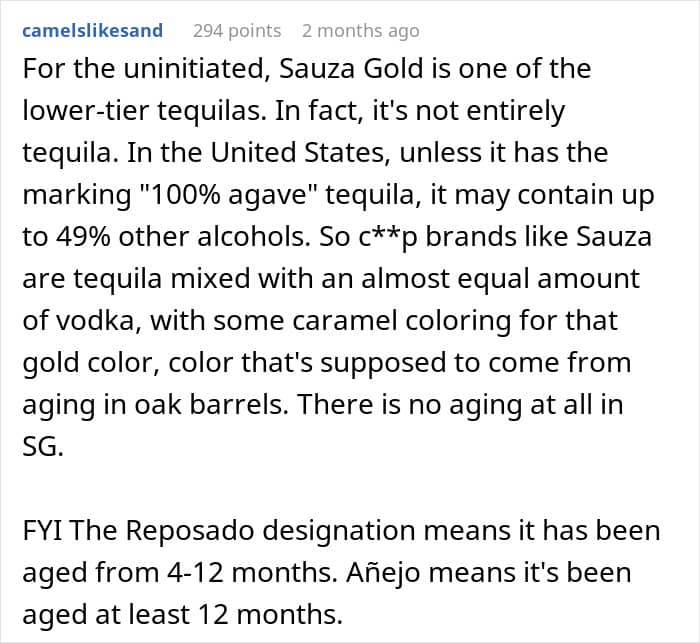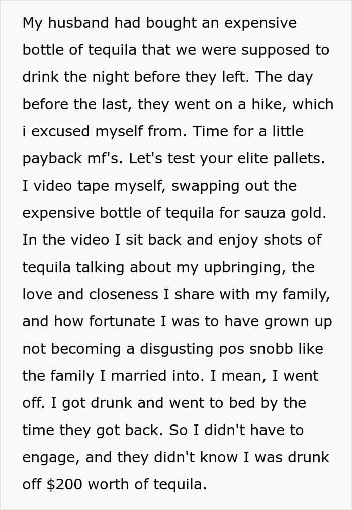 A woman shared how she swapped out a $200 bottle of tequila to teach a lesson after her in-laws gave her a humiliating nickname referencing her humble beginnings